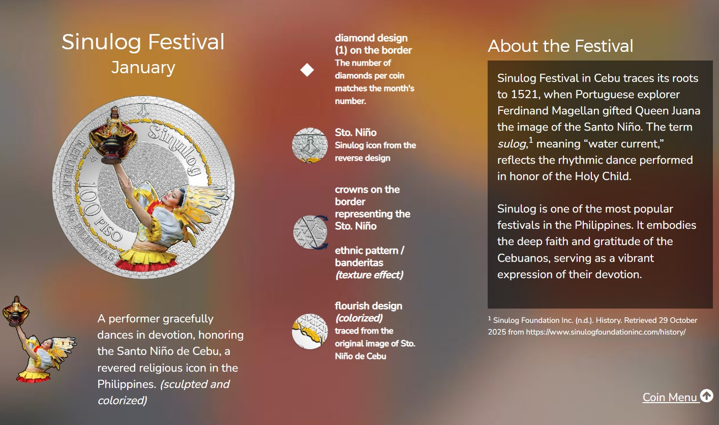 Unlike traditional commemorative coins that often focus on political milestones or historical figures, “Pista sa Pilipinas” centers on living culture. Each coin represents a festival that continues to be celebrated today, rooted in faith, local history, and community participation.